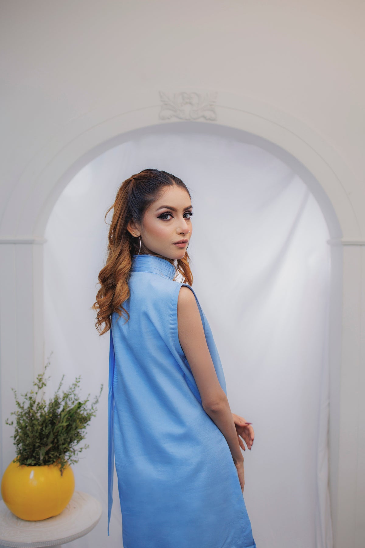 Elegance in Every Stitch ✨ Meet Powder Sky — a breath of fresh style in soft powder blue, tailored for effortless sophistication. This 2-piece co-ord set features a sleek, sleeveless top with a keyhole neckline and an eye-catching scalloped hem, paired with flowing wide-leg pants that drape gracefully for a polished silhouette.