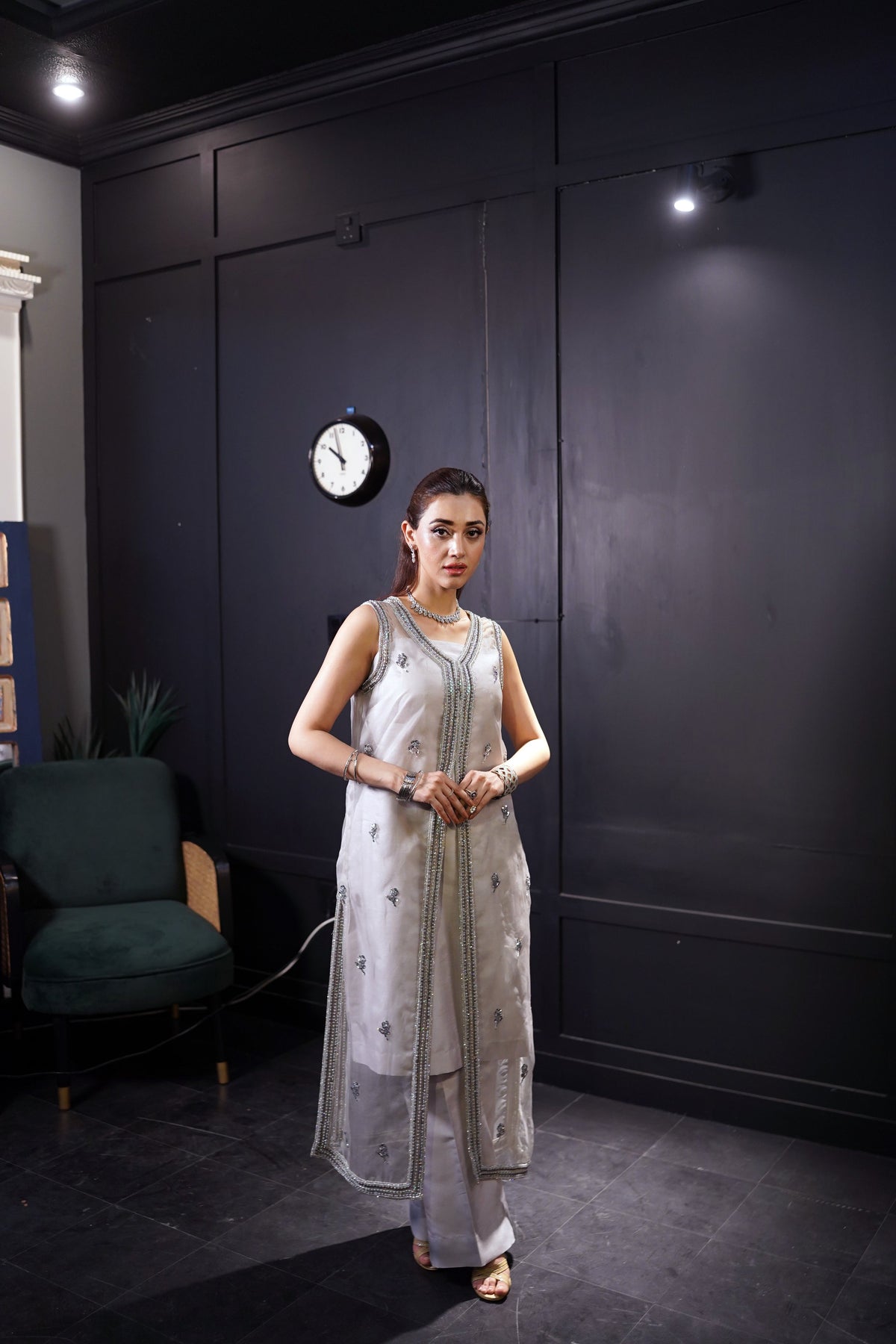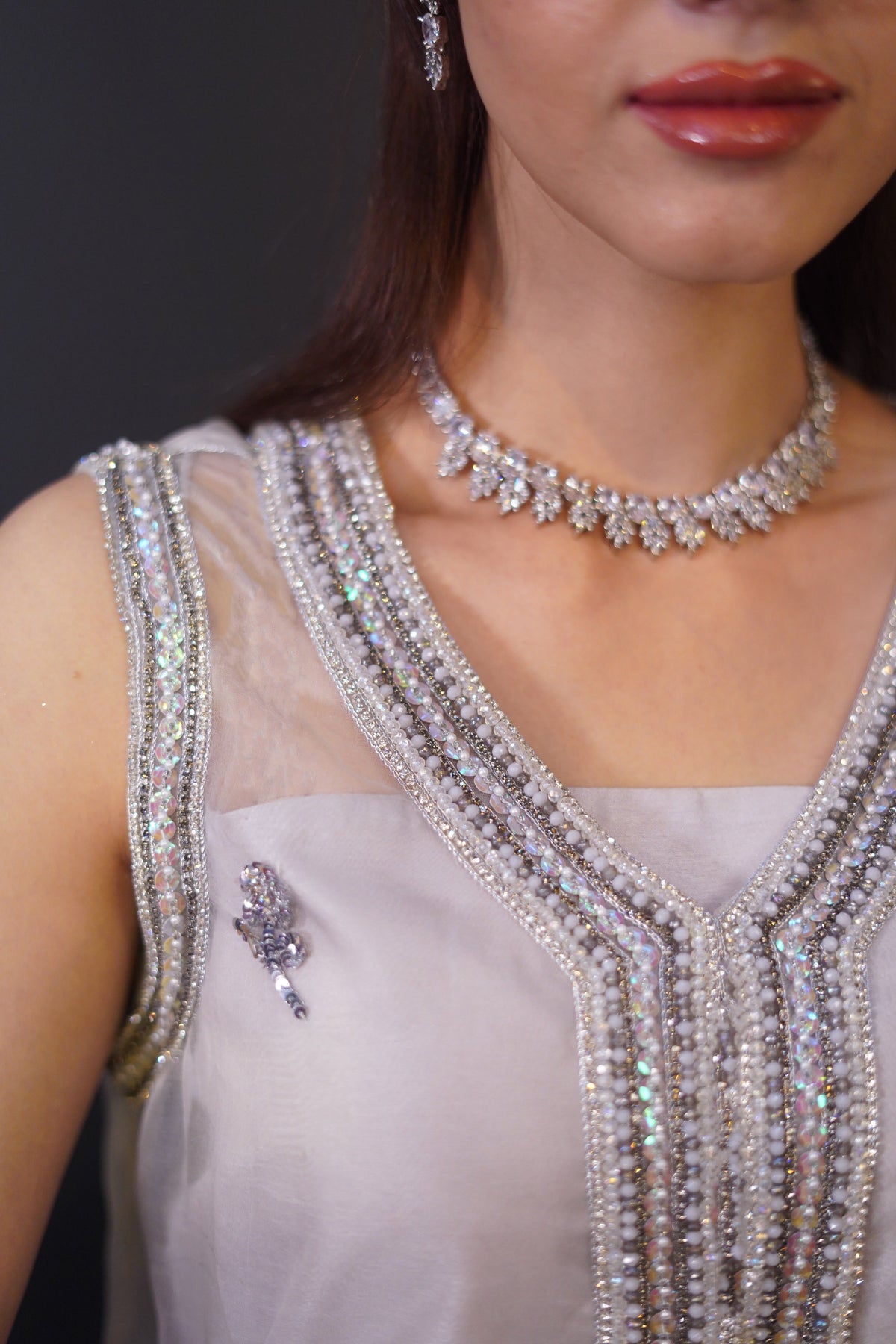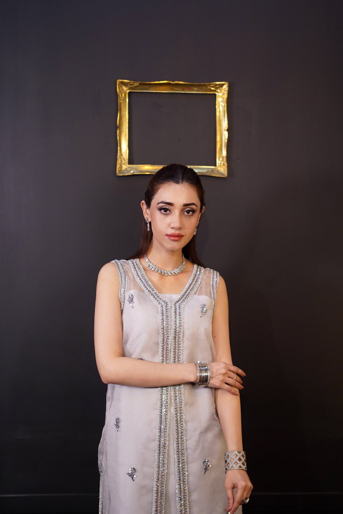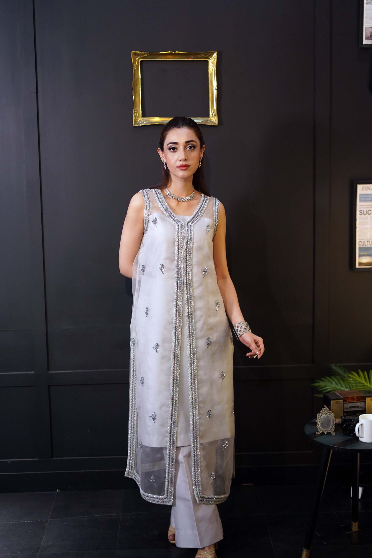 Our stunning Moonlight Organza 3pc outfit is the perfect combination of crystal work and sequence.